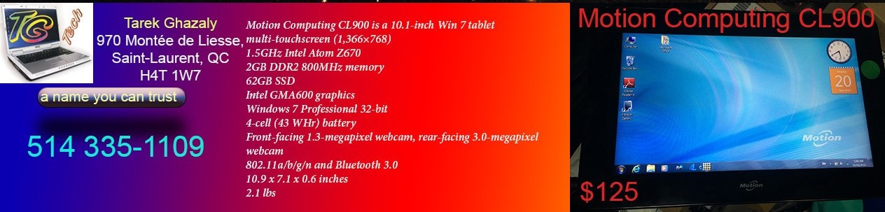 Motion CL900 is a 10.1" Windows 7 tablet, HDMI, WebCam, 2GB DDR2, 62GB SSD
